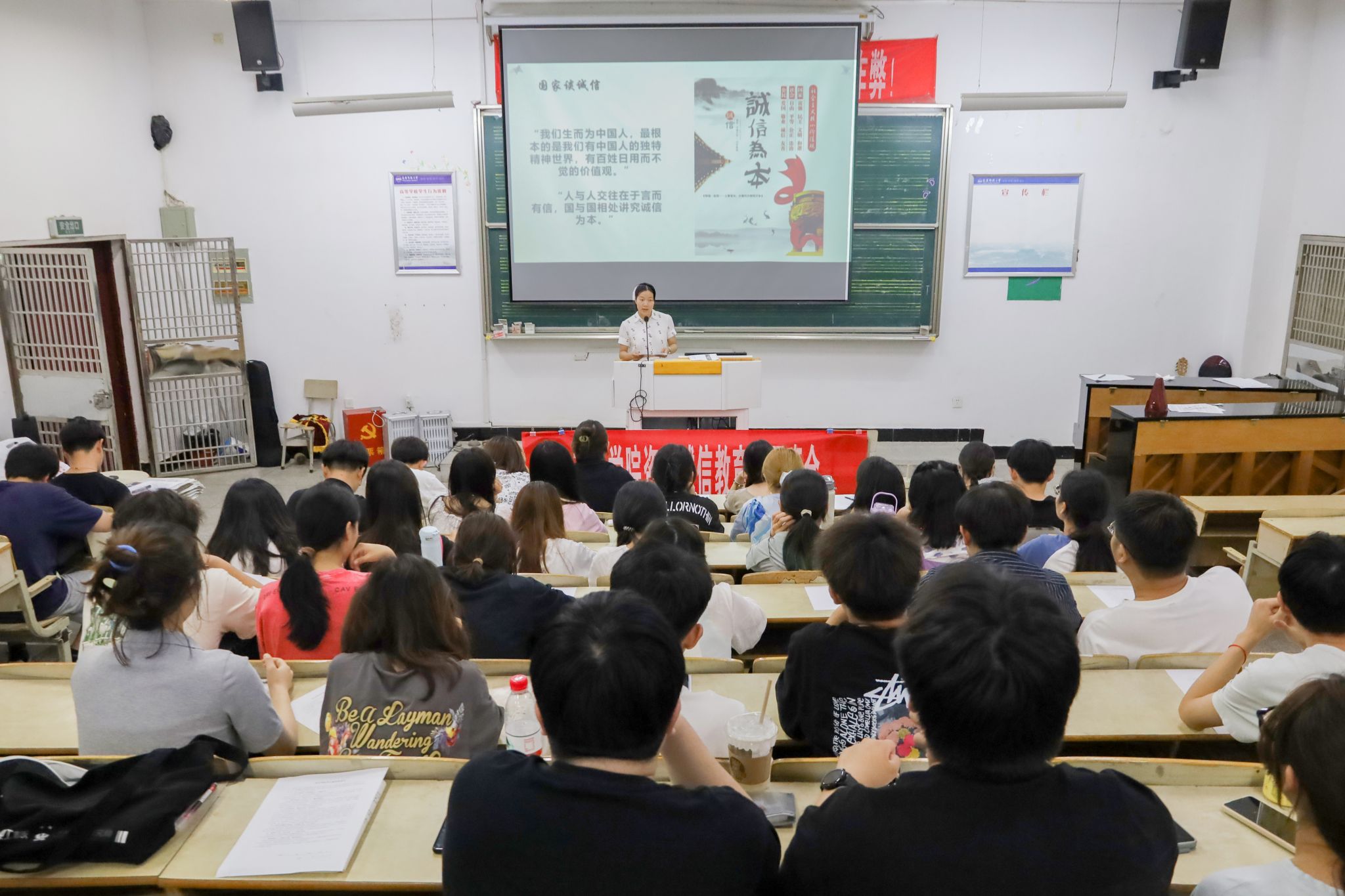 此次主题班会旨在倡导大学生培养诚信美德,充分发挥诚信在成长成才、提升学生综合素养等方面的作用,鼓励学生主动担起时代大任,为中华民族伟大复兴贡献青春力量。