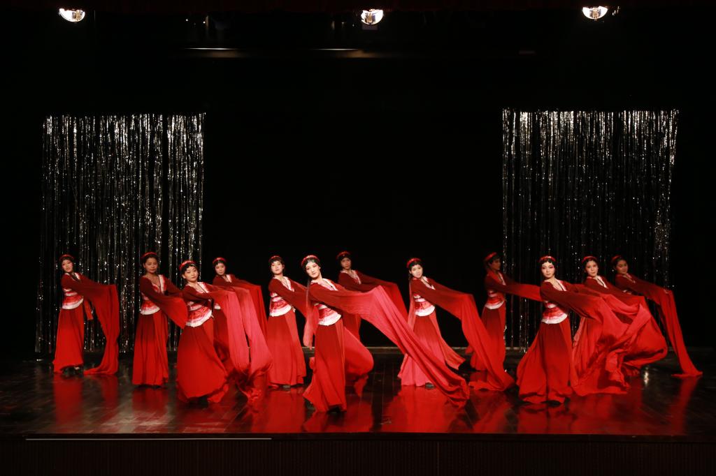 展现黄梅专业基本功的舞蹈《袖舞翩迁》气势恢宏,给现场观众带来视觉冲击。晚会节目丰富,以折子戏为主打,黄梅戏表演专业学生精彩的表演展示了她们的专业基本功,博得了现场的阵阵掌声。“我非常喜欢《袖舞翩跹》这个舞蹈,显著的民族特色是中国文化的自信。”音乐学专业2017级的腾亮说。
