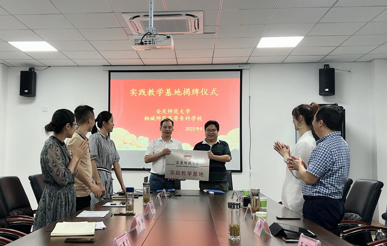 舞蹈专业袁帆老师,桐城师范高等专科学校教务处处长程爱兰、副处长张波、艺术与设计系党支部书记周琳、副主任张倩和实习生代表参加揭牌仪式。仪式由程爱兰主持。