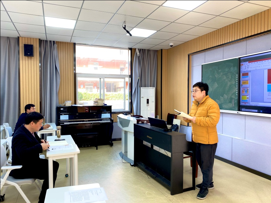 全体教职工出席报告会,会议由徐冉主持。
