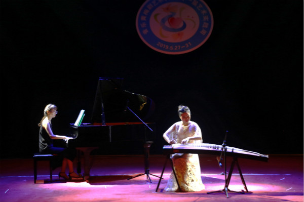 一曲《临安遗恨》,古筝与钢琴的融合,东西方文化的碰撞,婉转悠扬的弦音配合浑厚典雅的琴音层层递进,憾人心弦,丁洁的表演引得观众凝神观望。“古筝弹奏无论点弦、拨弦或肢体语言都很流畅生动,且富有感染力。”音乐学专业2017(3)班的万炎表示,这次实践周活动的举办让她享受了极富感染力的视听盛宴。