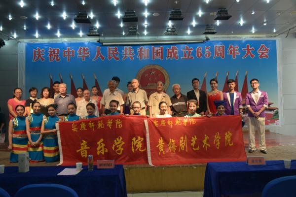 学子们与校离退休老同志一起开展文艺演出活动,以纪念缅怀革命先烈,庆祝新中国成立65周年。