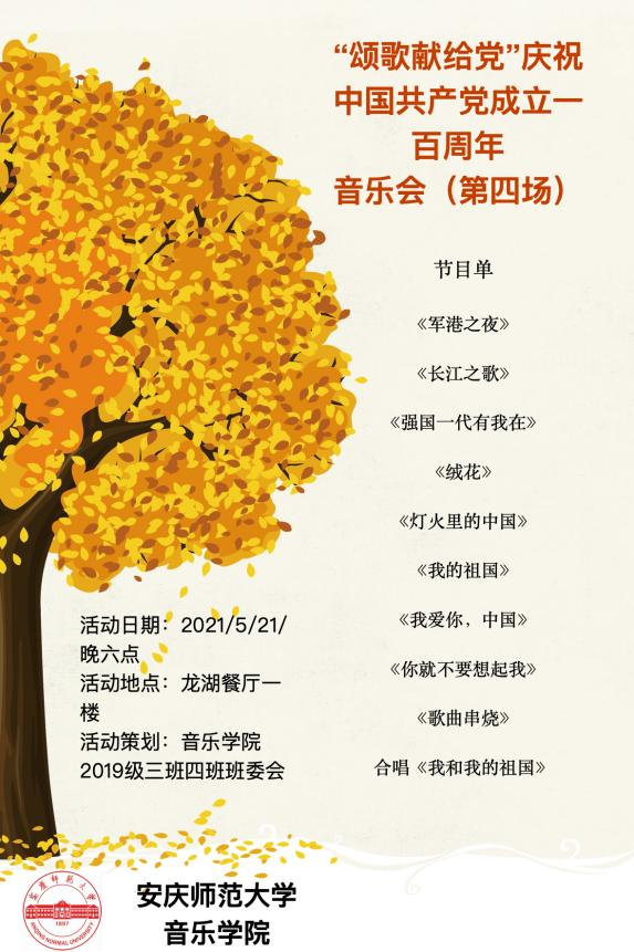 此次演出共上演10个节目,歌曲内容涵盖了抗战时期、新中国成立时期、改革开放等时期的历史故事,班级为此还设计了活动海报。