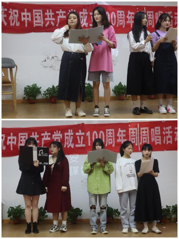 制作海报、下调场地、彩排练习……演出开始前一周,班级学生便开始着手准备,班委们将收集的歌曲一一审核,审核后便组织学生准备伴奏、有序排练。此外,各班级还提前组织选拔了节目主持人和摄影师。“活动很有意义,所以大家都很用心的准备。今年是建党一百周年,这样的活动既能表达我们对党的尊敬与热爱,同时也可以增强集体荣誉感。”此次活动班级负责人邹长文说。