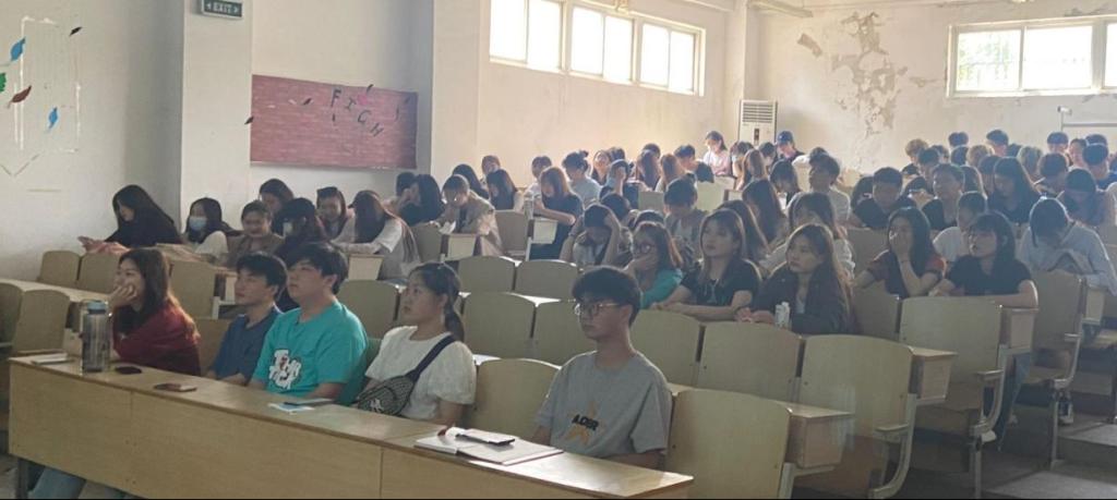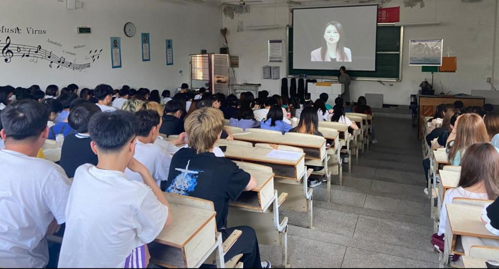 组织学生在艺术楼107教室观看“同上社会主义发展史思政大课”,辅导员卢星参与集体上课。