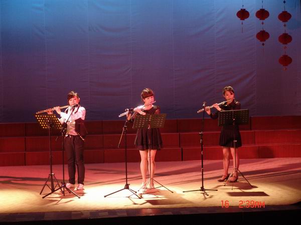 演出在一曲欢快的《紫竹调》乐声中拉开了序幕,同学们通过钢琴、萨克斯、竹笛、古筝等不同乐器展示了一年来专业学习成果:通过自编自导的古典舞《舞雪》和印度舞《烈焰红裙》展示出了他们活力与风采;通过高亢甜美的歌声展现出他们的激情;一首朗诵《青春不留白》,配以各年代独具特色的服装,演绎出60、70、80、90年代青年的热情与活力,显示出青年人的激情、勇敢与责任,让在场的观众为之感动;由杨瑾老师编排的歌舞《谷穗上的蝈蝈》,让观众领略了一群可爱的小机灵——小蝈蝈在谷穗上玩耍的美景,全场掌声热烈,将演出推向高潮,演出在班级大合唱《大学生圆舞曲》的和谐乐声中落下了帷幕。