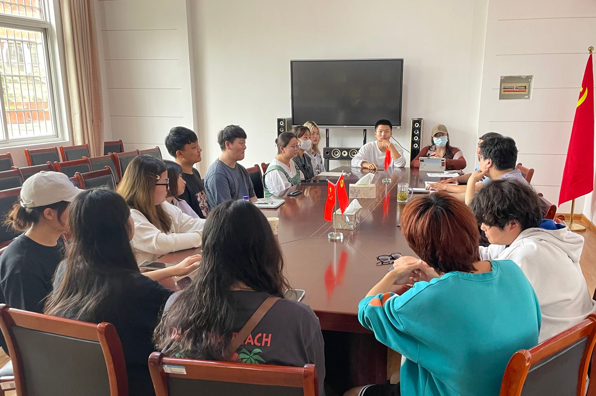 师生在艺术楼一楼会议室召开2022-2023学年第二学期期中教学检查学生座谈。副院长徐冉(主持行政工作)、党委副书记肖之进、教师代表卢星、方尧杨以及20级、21级、22级学生代表参加座谈会,会议由副书记肖之进主持。