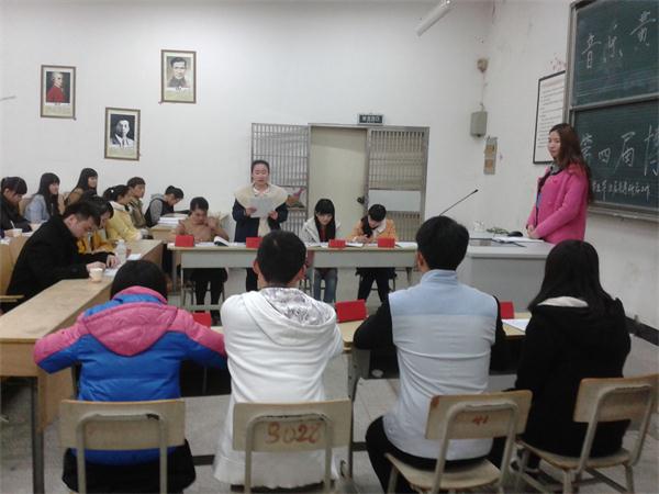 学生会学习部在艺术楼B107举办第四届“博学修身”杯辩论赛决赛,院主要团学干部担任评委,2013级全体同学观摩了比赛。