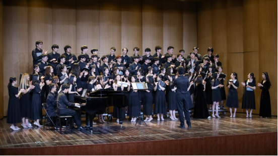 3个合唱团,10首合唱曲目、150多名合唱成员……不同风格的“声音艺术馆”一一展现,配合着伴奏、服装、灯光,为现场400余名观众送上一场视听“盛宴”。随着指挥的手臂轻扬,音符倾泻而出,一曲曲歌谣在音乐厅中奏响,观众们或闭上眼静静聆听,或跟随节奏轻轻哼唱,见证学子们的学习成果,感受音乐魅力。