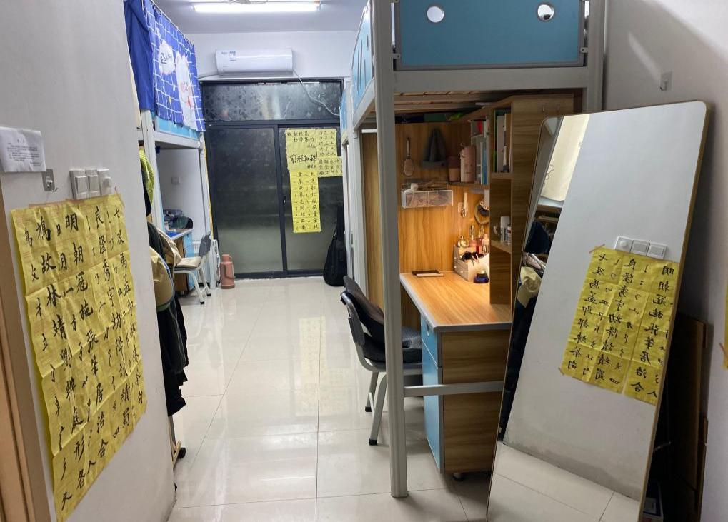“室友每天都会练习书法,我们就想到用她的书法作品来装饰寝室。”406寝室的书法装饰以“新”取胜,寝室成员、音乐学专业2021(3)班的李林意表示,在室友的影响下,全寝室成员都开始练习书法,一有空闲大家便会学习讨论。“我们平常会定期打扫寝室,保持整洁,达到这次比赛效果并非难事。”李林意称,刚入校时,她就和室友们“约法三章”,制定寝室规则,“对营造寝室环境与氛围,大家都心照不宣。”她认为,经过多次这样的集体行动之后,室友们之间的关系变得愈加深厚了。