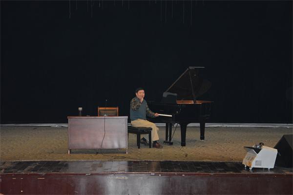 张艺教授结合传统歌曲《让我痛苦吧》、《长江之歌》和流行歌曲《好大一颗树》、《哭砂》、《红日》、《我只在乎你》、《月亮代表我的心》等歌曲实例,边弹奏示范,边讲述分析,阐释了传统和声语言在艺术歌曲、民歌和流行歌曲伴奏中的运用,张艺教授语言诙谐幽默、既深入浅出,又形象生动,广大师生深受启发。
