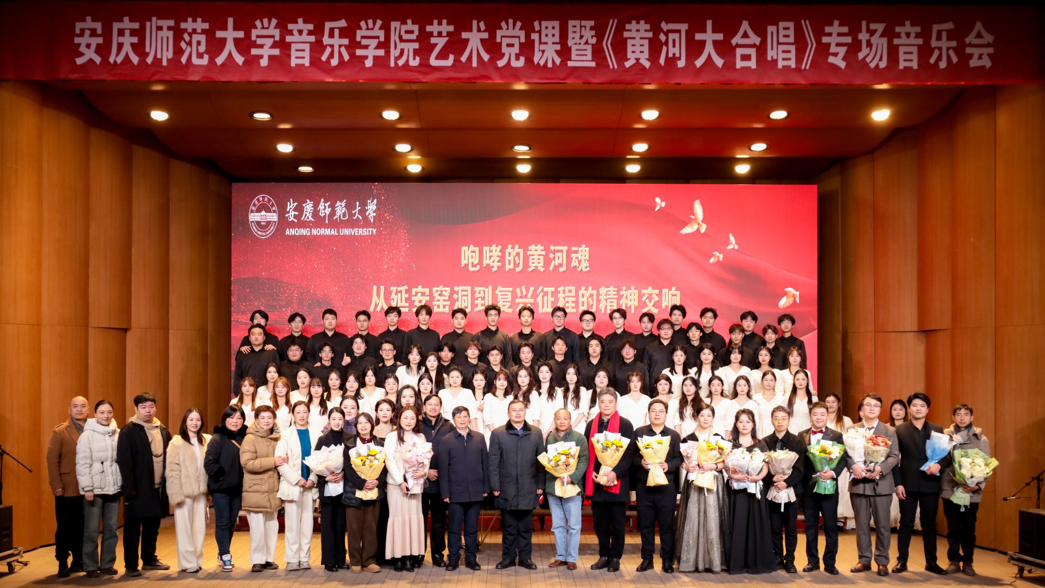 12月26日,音乐厅内气氛庄严热烈,一场以“唱响黄河魂,奋进新征程”为主题的51论坛 艺术周专场演出在此举行。校党委常委、组织部常务副部长计裕人、院党委书记张铭等嘉宾以及全院师生齐聚一堂,共同观摩。此次活动是51论坛 首次完整演绎《黄河大合唱》八个乐章,并创新性地以一堂生动的“艺术党课”形式,融红色经典于艺术实践,用歌声传承精神,以旋律激荡人心。