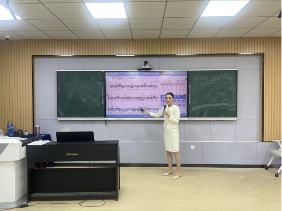 活动中,长三角师范院校教师智慧教学大赛二等奖获得者、省级教坛新秀叶丹老师首先带来了《基于〈乐理与视唱练耳〉课程教学改革实践审视与反思》专题讲座。她立足自身参赛经历与教学实践,系统阐述以学科竞赛为抓手,反哺教学理念更新、教学方法创新与教学质量提升的实践路径,重点分享了如何将竞赛成果转化为课堂教学实效,为在场教师破解教学改革困惑、优化教学设计提供了宝贵经验与清晰思路。