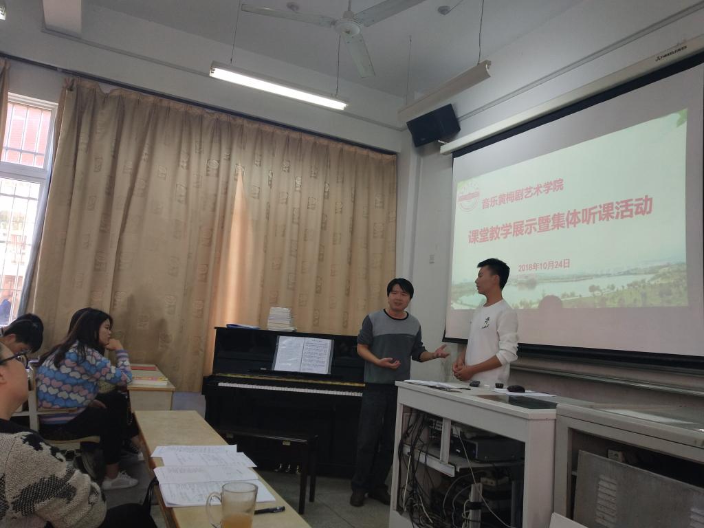 在艺术楼B106和音乐厅开展课堂教学展示活动及集体听课观摩。各教研室推荐的代表用最饱满的热情进行了精彩的课堂教学展示。郑琪副教授分别对大家的课堂教学情况进行了点评并提出改进建议。“这种老师听课的模式有利于更好地开展教学活动,增强了老师之间的交流学习。”郑琪说。