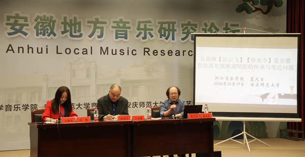 王安潮教授指出,这三份报告都体现了三位学者扎实的理论功底。陈瑜副教授提出民间音乐的作曲分析理论,这是一个全新的理论概念,将民间的唱腔化为创作技法,深有启发。朱教授所谈的地方性知识与民间音乐学校的传承问题,也深有体会。所提及的文化性、综合性、实践性的观点,将母语与口传心授都纳入到以西方科学性同等话语体系中,这是非常有意义的。田教授长于安徽、客居武汉,对区域音乐史有着非常深入的研究。田教授的呼吁非常好,希望安徽的青年学者们能够参与到安徽音乐的研究中来,这对于区域文化、地方文化的发展有着非常大的帮助。(撰稿:张源宁 摄影:许闯 审核:高艳)