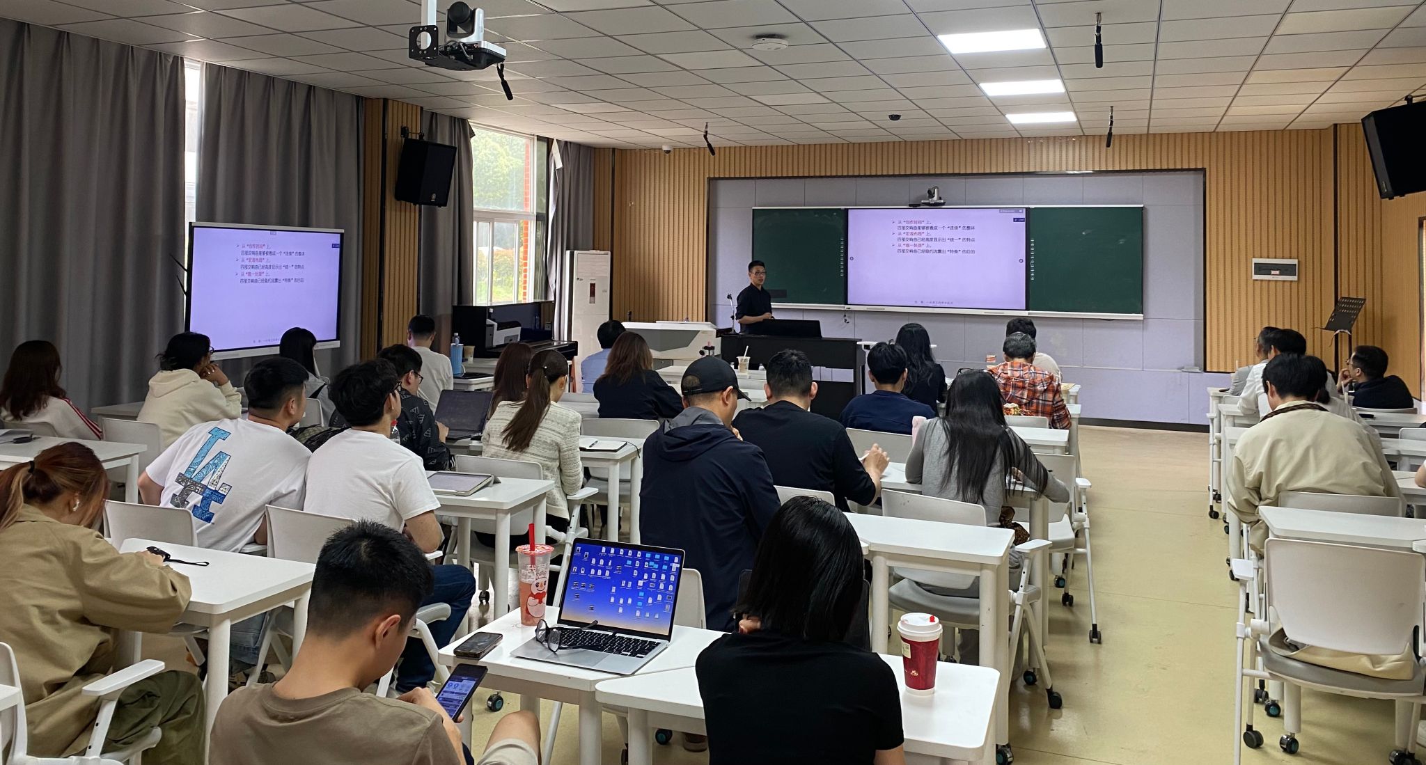 艺术楼智慧教室203举行专题学术讲座,吸引了众多师生到场聆听,现场学术氛围浓厚。