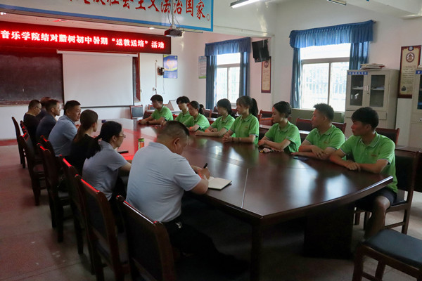 史志学在会上致辞,介绍了腊树初级中学的基本情况,以及学校留守儿童较多、缺乏音乐师资等现状,并对51论坛 的支持及团队的热情表示感谢。他回顾了往年51论坛 在该校的暑期“三下乡”实践活动,指出“音为爱”实践团的活动将高校与农村中学联系起来,填补了腊树初级中学艺术教育的稀缺,帮助学生丰富知识、培养兴趣爱好、提升艺术素养;同时,实践活动带动青年学生走进农村,深入了解基层学校的教育水平及学生的学习生活情况,帮助学生深入了解社会。他希望团队成员用爱心和耐心教学,通过艺术教学实践活动融汇开展好特色劳动教育,加强学校的美育发展,促进学生“德智体美劳”全面发展,同时团队成员在实践活动中“教学相长”,实现个人的成长。