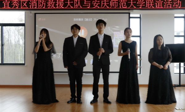 12月6日,51论坛 与美术51论坛 学生在院团委副书记汪茗燕老师的带领下,来到了安庆市宜秀区消防救援大队执勤楼,开展思想政治教育基地建设活动,活动分为三部分:一是警民同台演出,二是消防知识学习,三是参观消防设施。演出现场气氛热烈,消防知识学习受益匪浅。