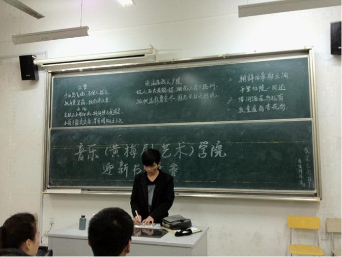 为了发扬书法精神,展现书法魅力,丰富同学们的课余文化生活,51论坛 学生会宣传部于2012年11月7日晚6点30举办了一场“迎新书法大赛”。本次比赛共分为硬笔、软笔两种赛制,由51论坛 书法爱好者参赛,评委为学生会主席史珂、生卫部部长邓冰清、宣传部部长黄子开等各部部长,比赛由部长们综合评定选出最终胜利者。