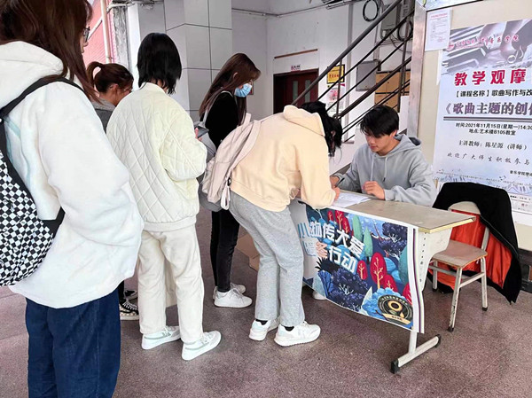 艺术楼,总能听到带有东北口音的吆喝声,进入楼内大厅,便能看见一位“说相声”的学生前后忙活,或为路过学生介绍爱心募捐活动,或整理收集到的衣物。