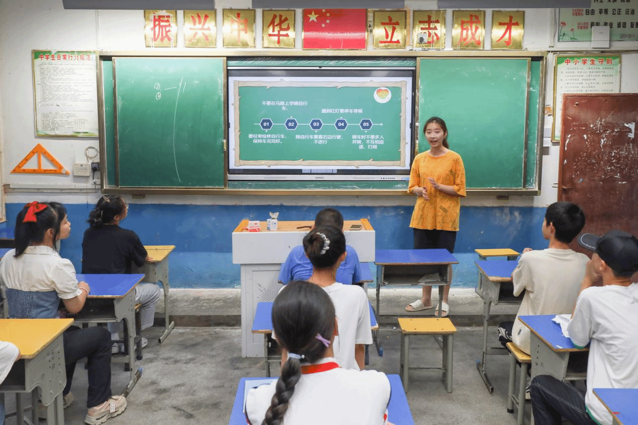 “因为我们的学生中有很大一部分是留守儿童,父母长时间不在家,所以留守儿童安全教育显得尤为重要。”“音为爱”暑期社会实践团队长、音乐学专业2021级的尹保庭表示,团队来到腊树初级中学开展“三下乡”活动旨在面向学生进行教育关爱,除了开展艺术课程,学生们的安全教育也要放在心上。