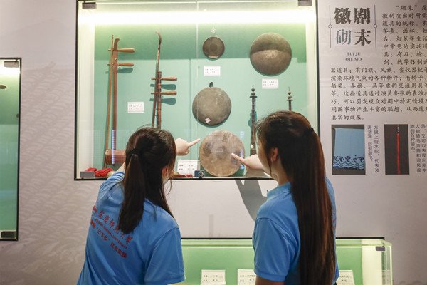 进入展馆,实践团队按照时间顺序,通过一件件展品了解历史:早期的戏班道具、不同时期的徽剧曲谱、历代艺人的演出剧照……队员们时而驻足细看文物细节,时而用手机拍摄资料,还不时相互提问交流,讨论徽剧唱腔与地方民歌的联系,分享各自对戏曲音乐的理解等。