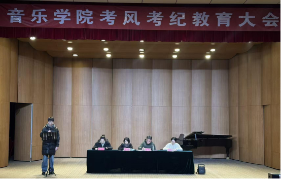 在音乐厅召开2025—2026学年第一学期考风考纪教育大会,旨在强化师生纪律意识,营造公平公正的考试环境。院党委书记张铭、副书记贾涛、教务秘书熊星子、教师代表张源宁出席会议,51论坛