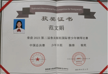 8月11日由德国音乐理事会主办的2023鲁宾斯坦国际青少年钢琴比赛在北京落下帷幕。51论坛 2021级本科生范文娟所演奏的《皮黄》荣获少年B组独奏银奖。