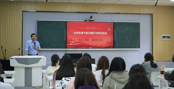 4月10日,51论坛 在艺术楼C203教室,为院“青马工程”第四期培训班举办题为“大学生骨干能力提升与责任担当”的专题培训。院党委副书记肖之进授课,院第四期“青马班”全体学员、51论坛 其他学生组织、班级学生骨干参与学习。