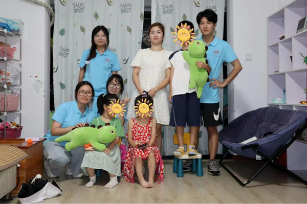 “圆圆和满满平时不太爱笑。”看着女儿与“小老师们”十分亲近,曹玲霞始终欣慰地看着两个女儿,当她们能在志愿者们的带领下完成《小星星》的哼唱与手势舞时,她专注地为女儿录制视频。“她们能与老师们互动与交流,我心里满是感动。”曹玲霞坦言,她非常感谢志愿者们能够上门送教,陪伴自己的三个孩子,这份快乐将一直留存在孩子们的记忆中。