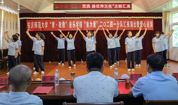 “音为爱”二〇二四一分队在怀宁县腊树镇烟墩村村委会二楼会议室举行暑期“三下乡”汇报演出,本次汇演由实践团成员与支教学校学生共同完成。