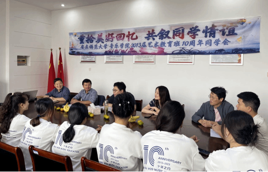 汇报了毕业后的工作、生活经历以及取得的成绩。十年的光阴流逝,有的校友在基层一线扎根,有的校友在中小学从事美育工作,有的校友创业成立公司,有的校友升级成为了爸爸妈妈…,伴随着校友们的分享,会议室不时响起阵阵欢笑声和祝福的掌声。在分享经历的时候,校友们纷纷表达对母校培育之情的感激,他们相信自己获得的成功离不开母校的教育和栽培,并表示今后继续坚持学习,完善自己,为母校争光。