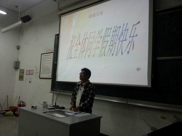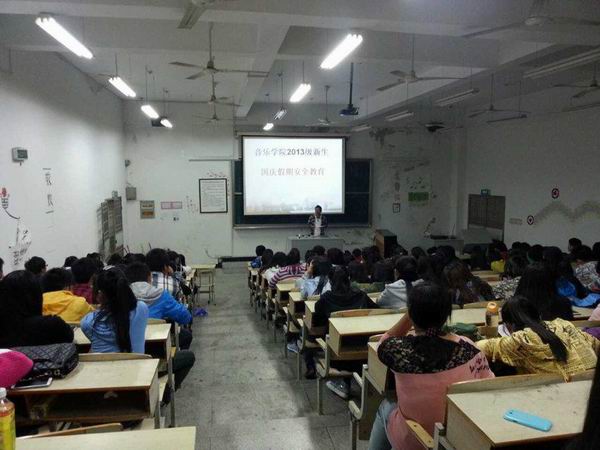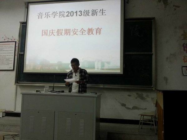 2013年“国庆节”即将来临,为了保障假期学生的人身安全,切实做好学生安全教育工作,让学生度过一个祥和、安全、充实的假期。9月27日新生国庆安全教育班会在艺术楼B107召开,班会由新生辅导员陈磊老师主持,2013级全体新生参加了本次班会。